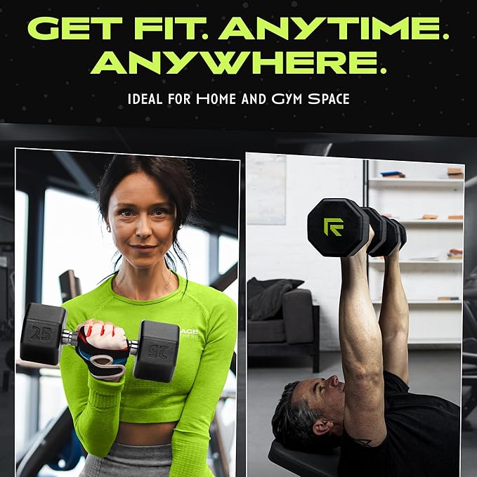 - EASY TO STORE: Rage Fitness Octo Dumbbells have an 8-sided shape, making them easier to stack neatly in your gym or home. The ease of use with a touch of aesthetic design makes them a perfect investment in your workout space.