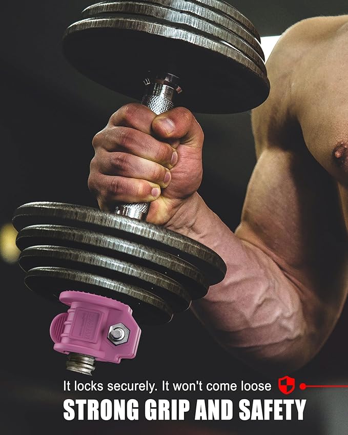 - ✔STRONG GRIP:Weight bar clips are specially designed for weightlifting and designed to provide an extra secure grip.Use these weight clips to hold your weights in place(Weight: 400+lbs)so they don't go rolling around while you're lifting. The proof of strength, even if you hold the dumbbell vertically(Weight: 60lbs), you can keep the weight! These weightlifting clips are perfect for dumbbell rows,benching, squatting etc.