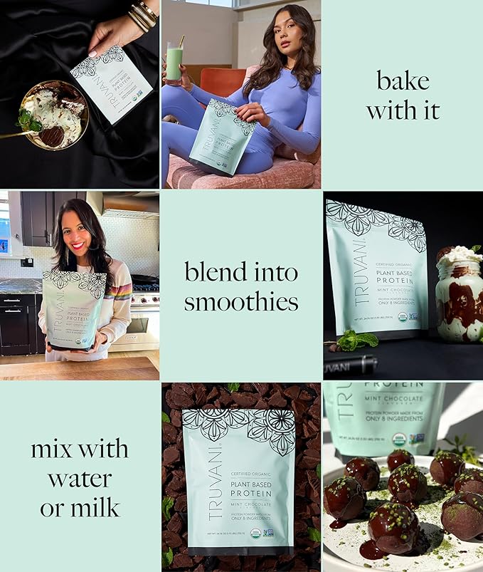 Truvani Vegan Pea Protein Powder | Mint Chocolate | 20g Organic Plant Based Protein Per Serving | 10 Servings | Keto | Gluten & Dairy Free | Low Carb | No Added Sugar