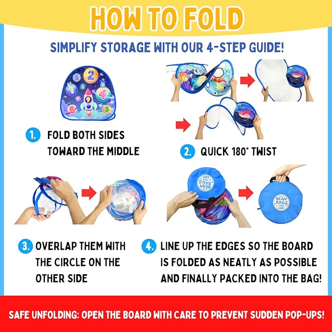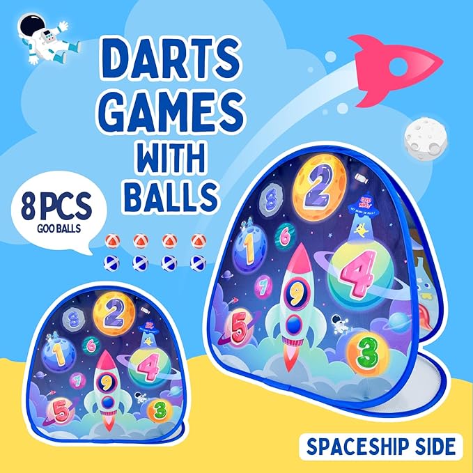 - ENGAGING DESIGN AND MATERIALS: Features colorful two-sided graphics with dinosaurs and a spaceship for an engaging play experience; made from durable, high-quality materials with soft, child-friendly bean bags for easy and enjoyable throwing