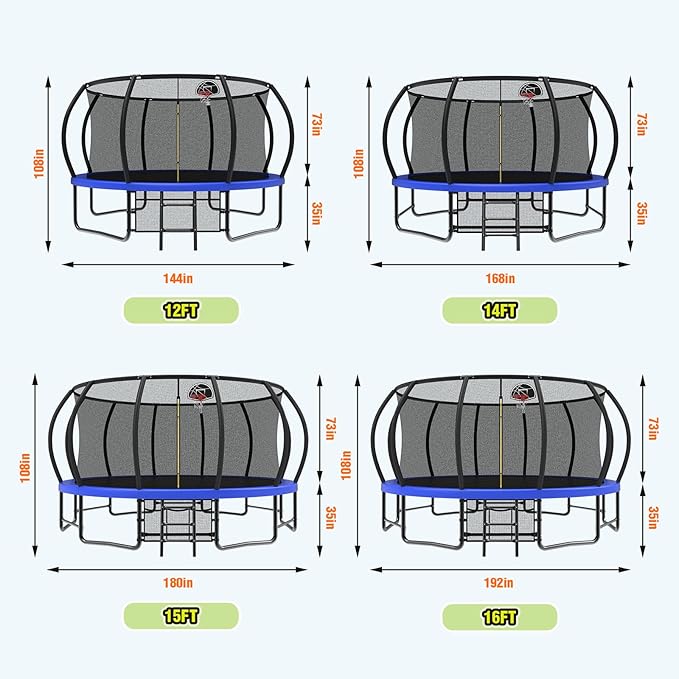 - 【Weather-Resistant Construction】 Outdoor trampolines engineered with heavy-duty galvanized steel framework and UV-resistant jumping mat, ensuring rust-proof durability and all-weather performance while supporting up to 330lbs capacity