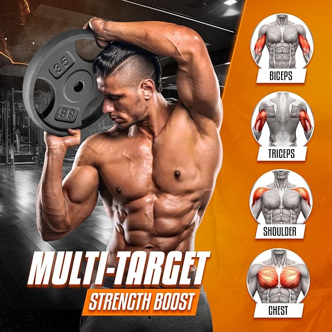 - DURABLE CONSTRUCTION: Made from high-quality cast iron for long-lasting use; Weight plates have 1 inch hole, just suitable for 1" standard weightlifting bars, great for building strength, muscle; Includes options from 2.5 lb plates to 35 lb
