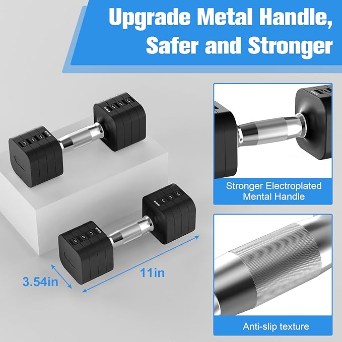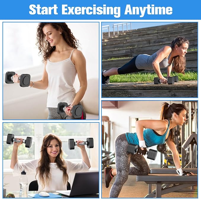 - 【Square Weight Block】Our adjustable dumbbell set has a square shape, allowing you can find more usage of the weight set such as push-ups. In addition, the multiweight dumbbell set will not roll around for safety.