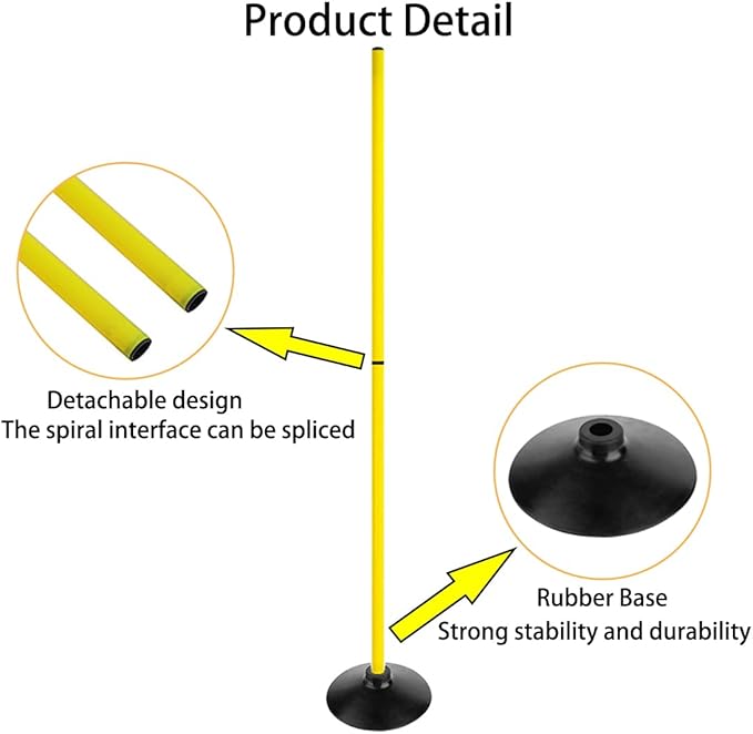 • The sign pole consists of two small poles, which can be assembled into a 6FT training pole by connecting tubes. It can be split when not in use, easy to carry and save storage space. The training pole can be used when inserted into the rubber base.