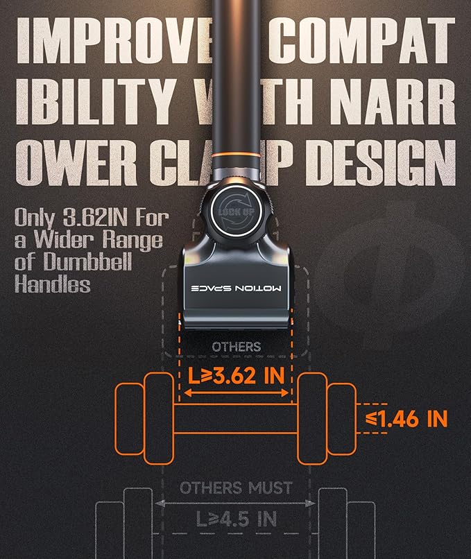 - đ„ăSecurely Clamps onto Most DumbbellsăMotion Space dumbbell converter bar is compatible with most standard and adjustable dumbbell sets. With a handle thickness of up to 1.5 inches and a minimum length of 4.5 inches, it provides adjustable weight options for your workout needs.