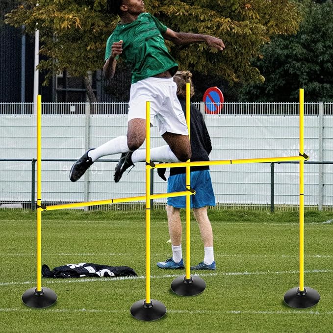 • The agility hurdle set is suitable for coaches and athletes who train in group, or can be practiced in the backyard alone. This is an excellent training agility poles set or a great gift for your family and friends. It is designed for speed and agility training, such as balls, track and field.