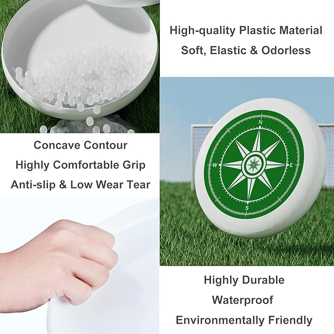- 2.Material: This Compass Ultimate Disc is made of polyethylene which is a high-end plastic that has excellent grip for consistent throws and not easily damaged when hitting walls or concrete floors