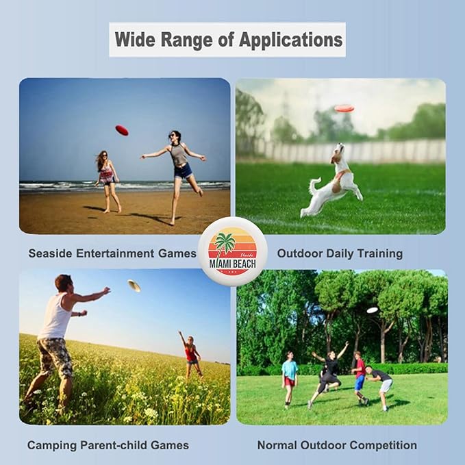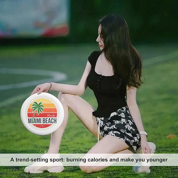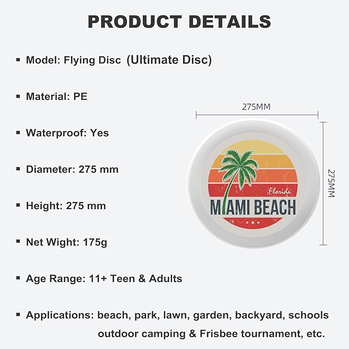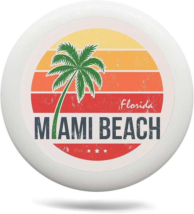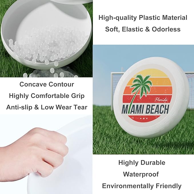 - 2.Material: This Miami Beach Ultimate Disc is made of polyethylene which is a high-end plastic that has excellent grip for consistent throws and not easily damaged when hitting walls or concrete floors