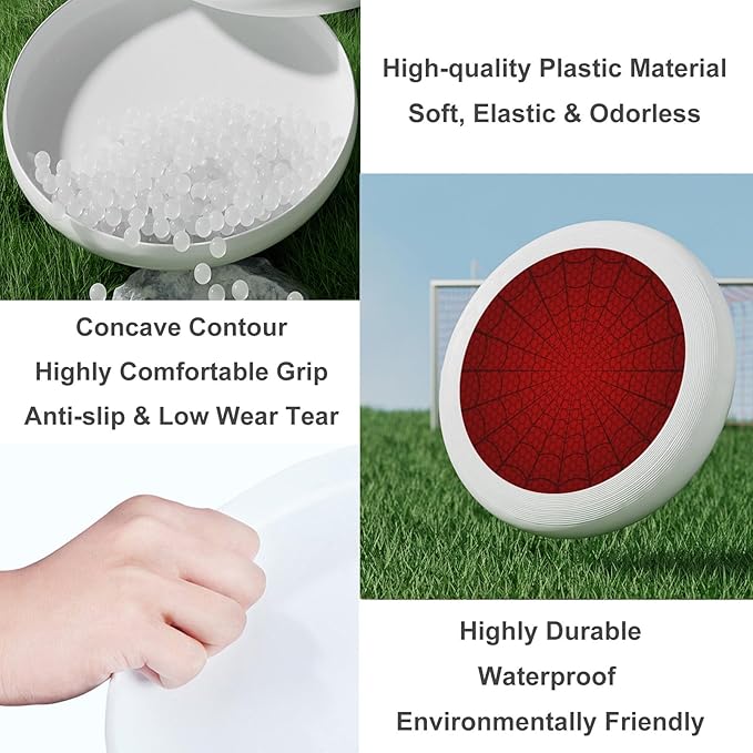- 2.Material: This Spider Web Ultimate Disc is made of polyethylene which is a high-end plastic that has excellent grip for consistent throws and not easily damaged when hitting walls or concrete floors