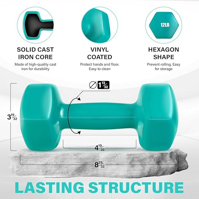 - VINYL-COATED: This vinyl-coated weights dumbbell set protects both your hands and floor during workouts & easy to clean with just a swipe; The vinyl also enhances grip stability, helping you maintain control of your form—ideal for intense workouts