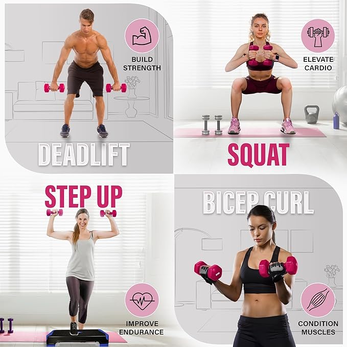 - VINYL-COATED: This vinyl-coated weights dumbbell set protects both your hands and floor during workouts & easy to clean with just a swipe; The vinyl also enhances grip stability, helping you maintain control of your form—ideal for intense workouts