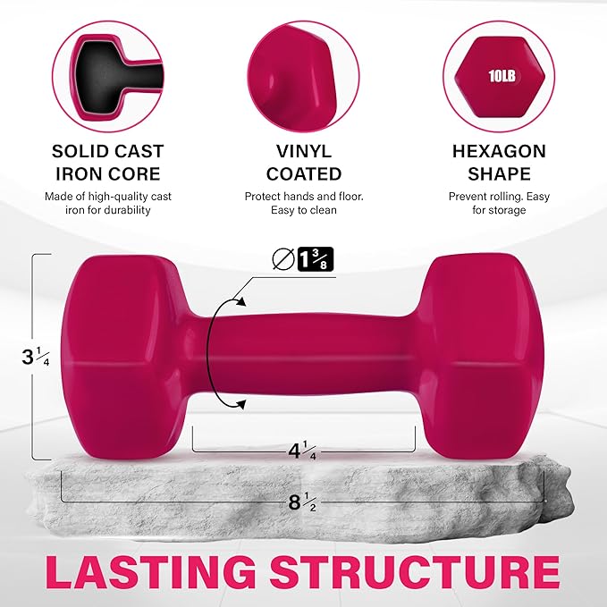 - DURABLE WEIGHTS: The weights set of 2 is made from cast iron with a vinyl finish, providing robust durability for dumbbell exercises; Designed to withstand regular use, these weights keep you energized and focused during every daily workout
