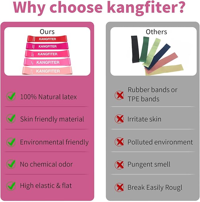 - 【NATURAL LATEX MATERIAL】: KANGFITER resistance bands are made of durable and skin-friendly natural latex, providing a premium and stable workout experience.All exercise bands are thoroughly tested before shipping.