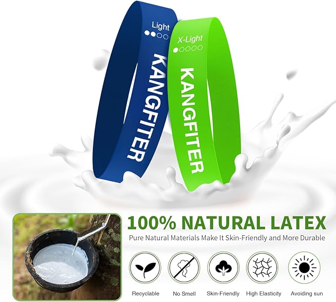 - 【NATURAL LATEX MATERIAL】: KANGFITER resistance bands are made of durable and skin-friendly natural latex, providing a premium and stable workout experience.All exercise bands are thoroughly tested before shipping.