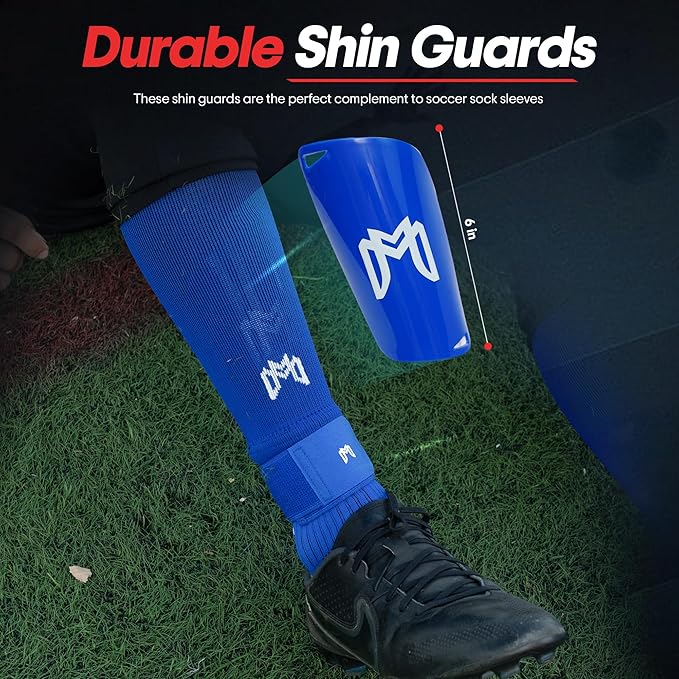 - Durable Shin Guards: The shin guards in this bundle will complete your look on the pitch. We provide you with all the soccer equipment necessary to excel on the field. These shin guards are the perfect complement to soccer sock sleeves and anti slip grip socks that we provide for you.