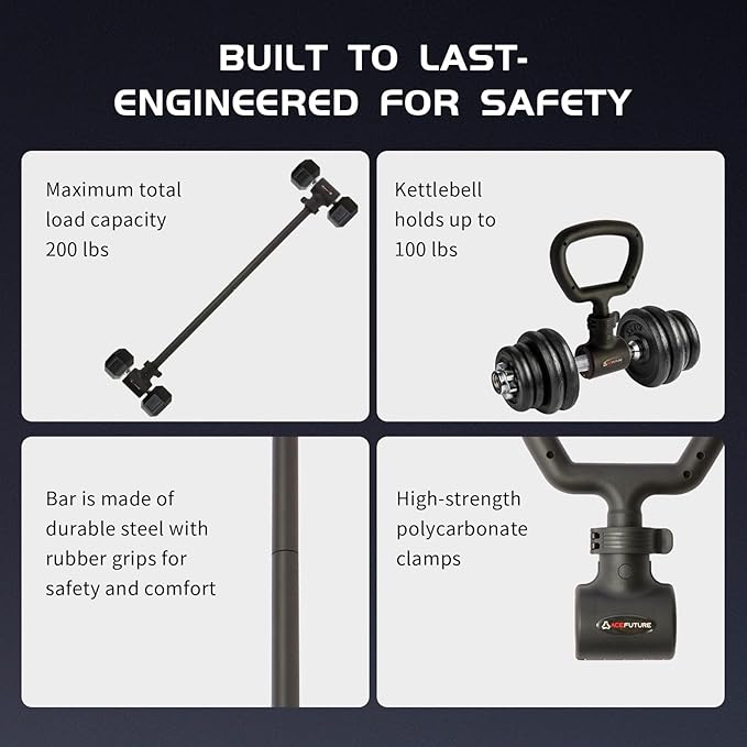 - 【Industrial-Grade Construction】Dumbbell Converter Bar has High-strength materials withstands 200lbs total weight (100lbs per clamp), kettlebell withstands 100lbs total weight (50lbs per clamp) Anti-rust coating handles intense workouts while thickened clamps ensure wobble-free stability.