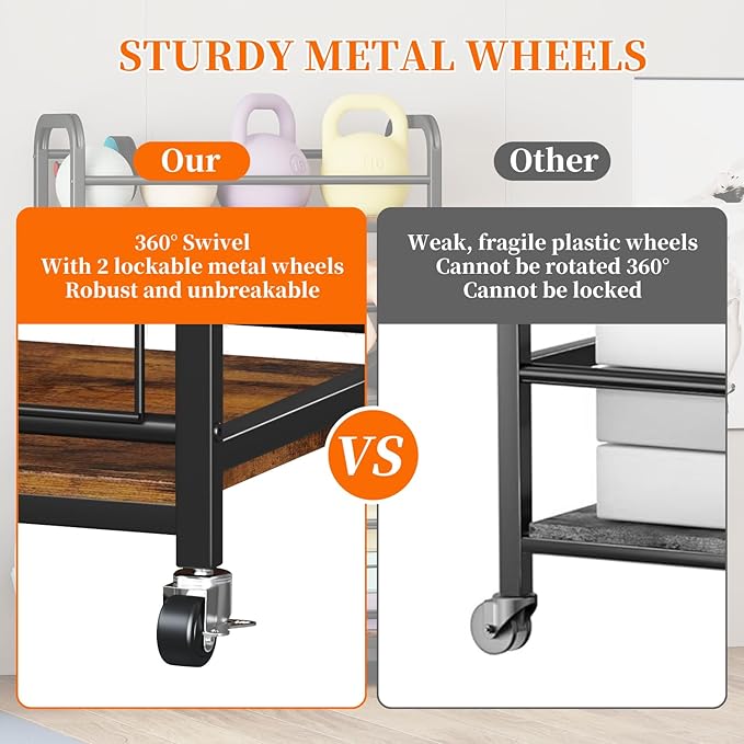 - HEAVY DUTY WHEELS WITH BRAKES: The wood weight rack for home gym is equipped with 4 multi-directional industrial wheels(2 lockable) that roll well and have a high load capacity. You can easily move the strength training dumbbell racks to anywhere you want and lock it for placement