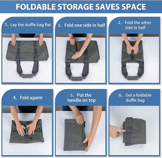 - 【Space-Saving Foldable Travel Bag】:Engineered with heavy-duty water-resistant polyester, this collapsible duffle rolls into a compact pouch! Securely store camping gear, tents, kayaks, or folding bikes with reinforced seams and dual carry handles