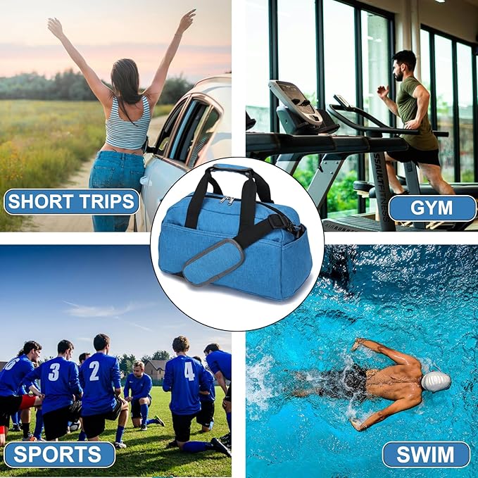 - Multipurpose: This small gym bag is a great personal items bag for gym, travel, sports, short trips,yoga, swim, and more. Suitable for gym bag, mini travel duffel bag, overnight bag, weekender bag, carry on bag etc.