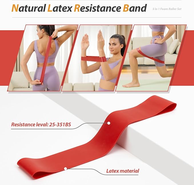 - 【5 in 1 Deep Tissue Muscle Massage Set】 Package includes 1 hollow foam roller(13"*5"), 1 muscle roller yoga Stick(15"), 1 massage ball(Φ2.5"), 1 stretching band(24"*2"), 1 storage bag
