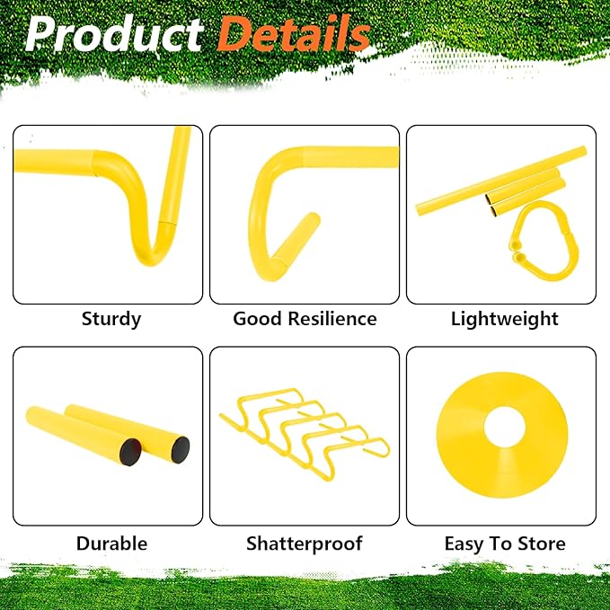 • Detachable and Portable: This agility training hurdles made of lightweight, durable, and weatherproof PVC, these agility training hurdles are built to last. These set are designed to be detachable for easy installation and portability for use in gym classes, training grounds, or clubs, the soft marker cone prevents injuries.