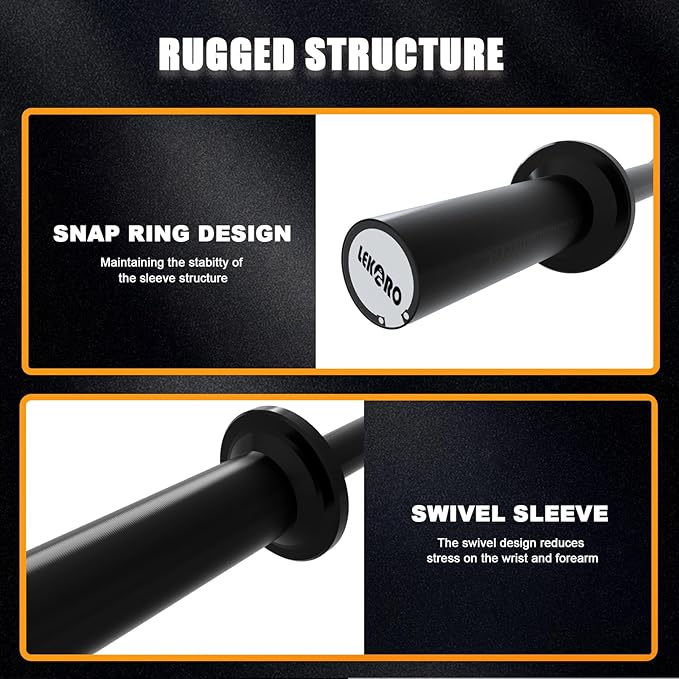 - STRONG & SECURE GRIP: Olympic EZ Curl barbell bar features Knurled handles that provide secure and non-slip grip while adding comfort. Swivel sleeve design reduces stress on wrists and forearms, sleeve end is equipped with snap rings, ensuring stable port positioning.