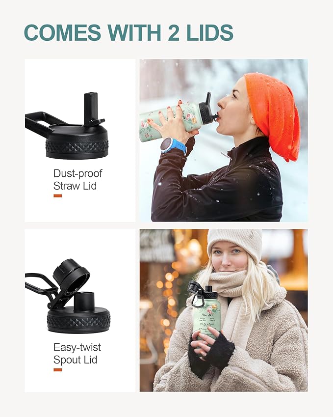 - 100% Leak-Proof: Topre 32oz stainless steel water bottles includes two lids—a straw lid and a spout lid. Both are equipped with silicone rings to prevent any spills or leaks, and are completely BPA-free for your peace of mind.