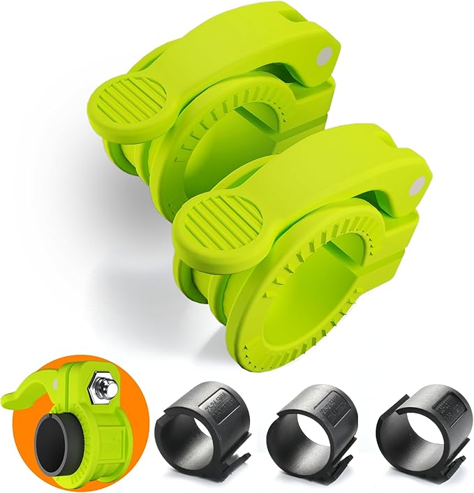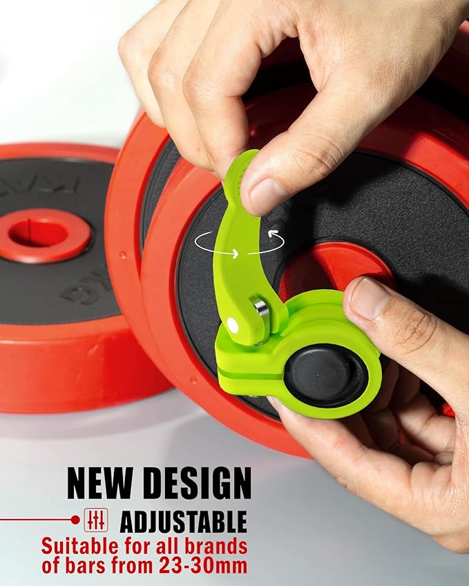 - Wide Size Adjustment Range:Adjustable barbell clamps fit 0.9-1.18inch bars with precise millimeter control. Self-tightening mechanism ensures secure grip that won't loosen over time during workouts.