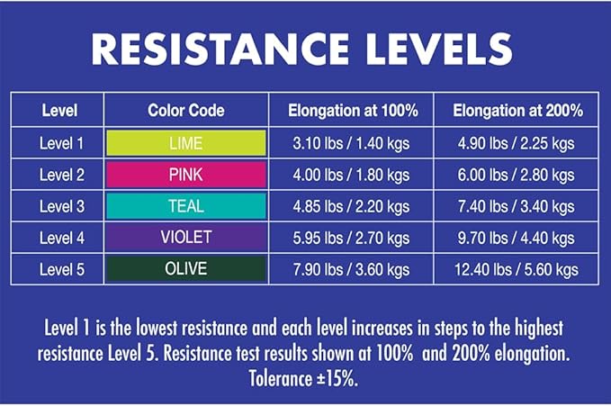 - Resistance Chart - Use the resistance chart to determine the Level needed for accurate and consistant stretch at a specified resistance