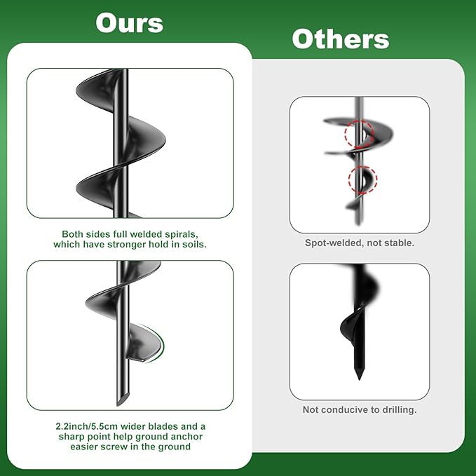 - Improved Full Spiral Blade Design: full welded wider spiral and a sharp point, which have stronger hold in soils and install in various soil types.