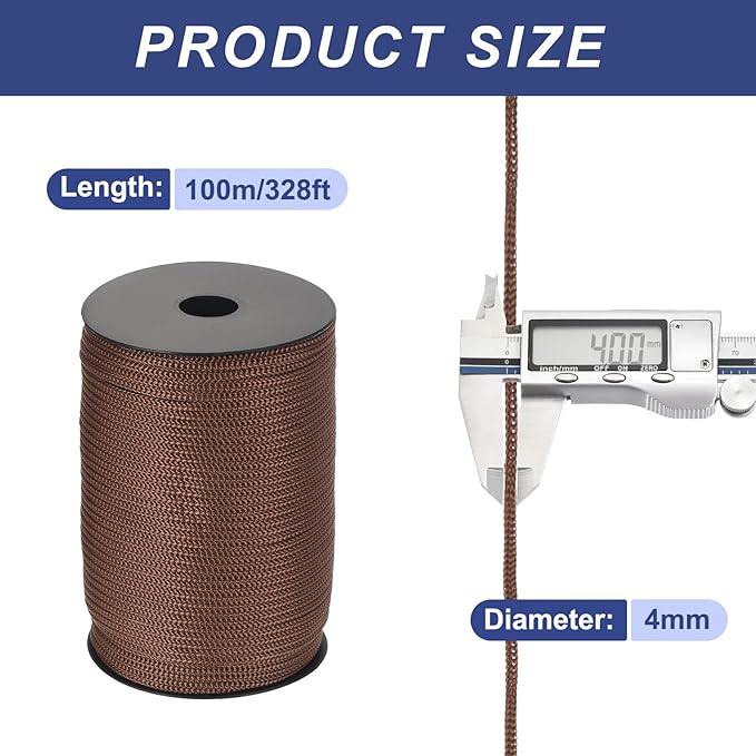 - Polypropylene Nylon Rope. Length: 100m/328ft. Diameter: 4mm(3/16 inch). Color: Dark brown. Material: Polypropylene. Style: Braided Rope. In the Package: 1 x Polypropylene Rope
