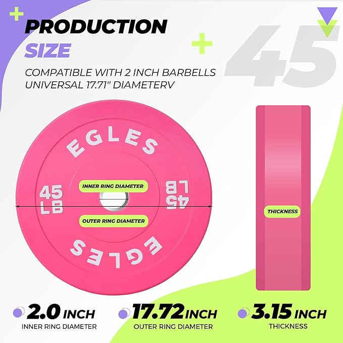 - Colors To Embellish Healthy Exercise: Stand out with EGLES vibrant weight plates set, this eye-catching pink not only enhances the aesthetic appeal of your gym but also improves visibility, making it easy to identify weights during workouts. Made from high-density virgin rubber, it is odorless, reduces noise, and protects floors from damage. Perfect for both home gyms and professional training studios, EGLES pink weight plate set redefines fitness with style and functionality