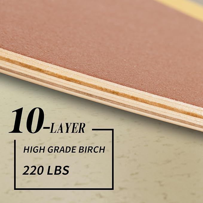 - HIGH QUALITY BUILT TO LAST: The balance board trainer is made of 10 layers of high grade birch, with the exercise board size 29.5''×11.8’’×0.6’’ and the roller size 15.7"x3.74", max support up to 220lbs. Roller is made of high-density cork,increases friction and don't adsorb dust and hair. Protect your floor from scratches.