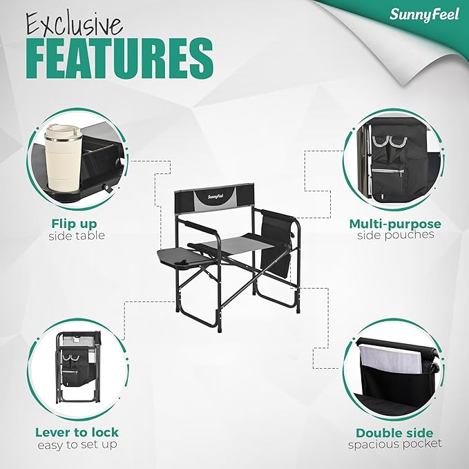 SUNNYFEEL Oversized Camping Directors Chair, Portable Folding Lawn Chairs for Adults Heavy Duty with Side Table,Pocket for Beach, Fishing,Picnic,Concert Outdoor, Foldable Camp Chairs