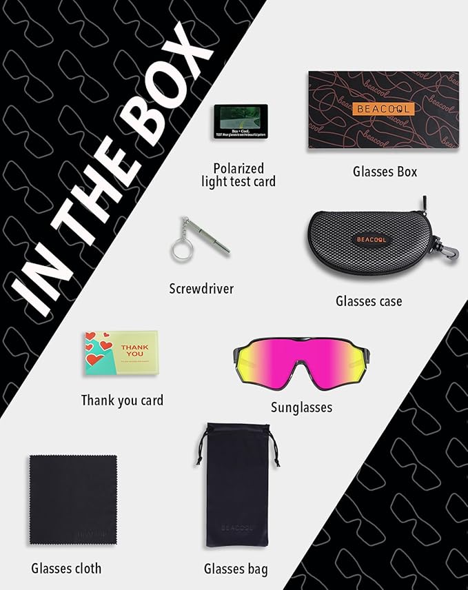 - EXQUISITE PACKING: You will get a pair of BEACOOL sunglasses, a hard and exquisite protective case, a cleaning cloth, a pouch and a small sunglasses screwdriver. Fashion and styling sunglasses, perfect for sport and outdoor activities lovers