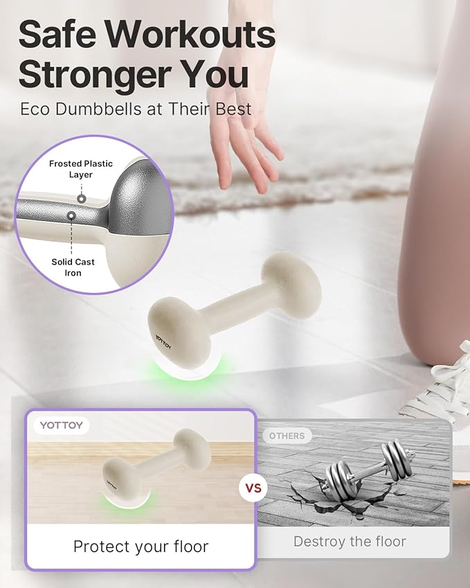 • 2.Anti-Roll Design for Easy Storage: The no-roll head design ensures that the dumbbells set of 2 stays securely in place, preventing unwanted movement. These rubber dumbbells are perfect for easy storage in your weights set for home gym, ensuring your workout space remains organized and safe. Ideal for weights for women at home
