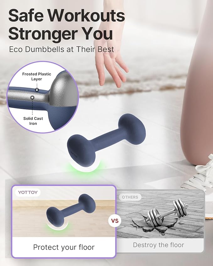 - 1.Durable Non-Slip Grip: Our neoprene dumbbell set is crafted from sturdy cast iron and encased in 3mm thick neoprene for a non-slip grip. These hand weights are smooth, easy to hold, and sweat-resistant, preventing calluses and scratches while remaining gentle on the skin. This dumbbell set is built to be unbreakable, offering long-lasting performance for your workouts