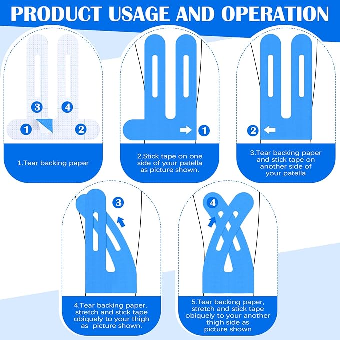 - Precut Knee Support Tape: our waterproof kinesiology tape for knees are typically thin and flexible, providing comfort during exercise without restricting movement: with a zoned peel-off design, the tapes fit perfectly around the knee, allowing you to focus on your workout