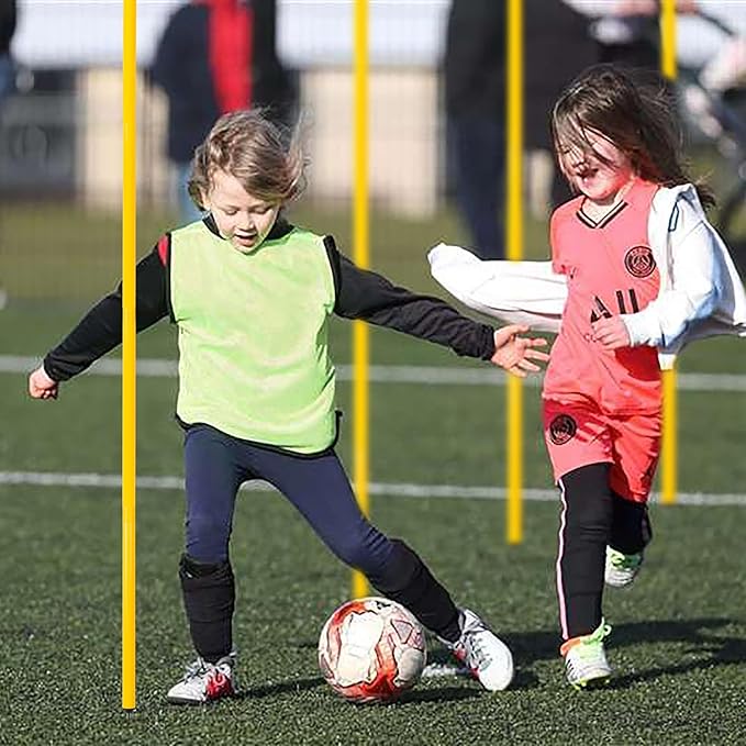 - 【HEIGHT ADJUSTBLE】 These soccer poles for training are about 5 feet high and are very easy to disassemble into 4 parts, and the easy-to-adjust height (1.1ft, 2.4ft, 3.7ft and 5ft) allows for use in various fields and terrain, making them versatile training tools for soccer, basketball, football, and more. With the storage bag (Included), this soccer training equipment is very convenient to transport and store in normal use, and will not take up too much space for you.