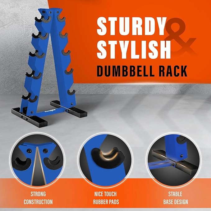 - DURABLE RUBBER PAD: Built with high-quality rubber pad, A frame dumbbell rack emits a pleasant smell during workouts; The rubberized pads prevent dumbbell handles from touching the steel frame, protecting the plating and making it easier to place dumbbells on the rack