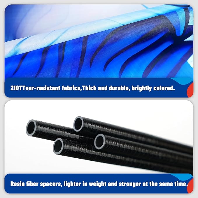 - Durable and reliable: Made of high-grade materials, it is sturdy and durable, suitable for high-altitude flying, lightweight and easy to carry. The lightweight yet sturdy fiberglass rods ensure that this kite is both portable and resilient