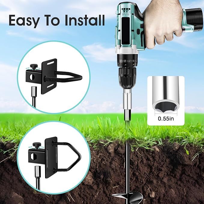 - Easy to Install: Just use with a electric drill(Recommended Drill Driver), save time and labor, suitable for different ground conditions