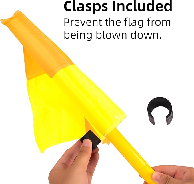 - 【Package Include】 4 x 5 ft soccer corner flags with spring loaded bases and a storage bag . Special clasps on each flag prevent the flag from being blown down.