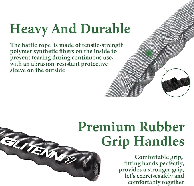 - Exercise Rope with NON-SLIP Design Handle: The handle is designed to protect your hands with an added non-slip design that provides a firm grip when you are using the battle rope