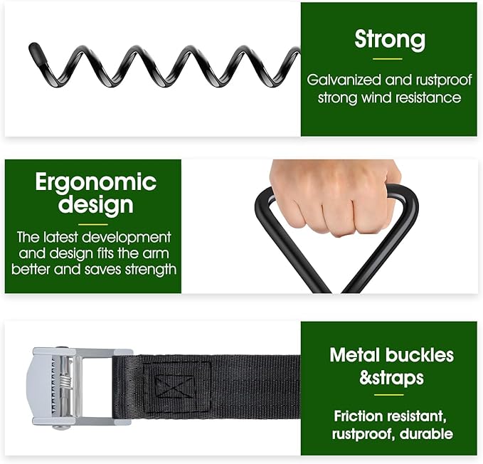 Trampoline Stakes Heavy Duty Trampoline Anchors Kit, Spiral Screw In Ground Anchors with Straps, Earth Anchors Earth Anchors Swing Set Anchors for Trampoline