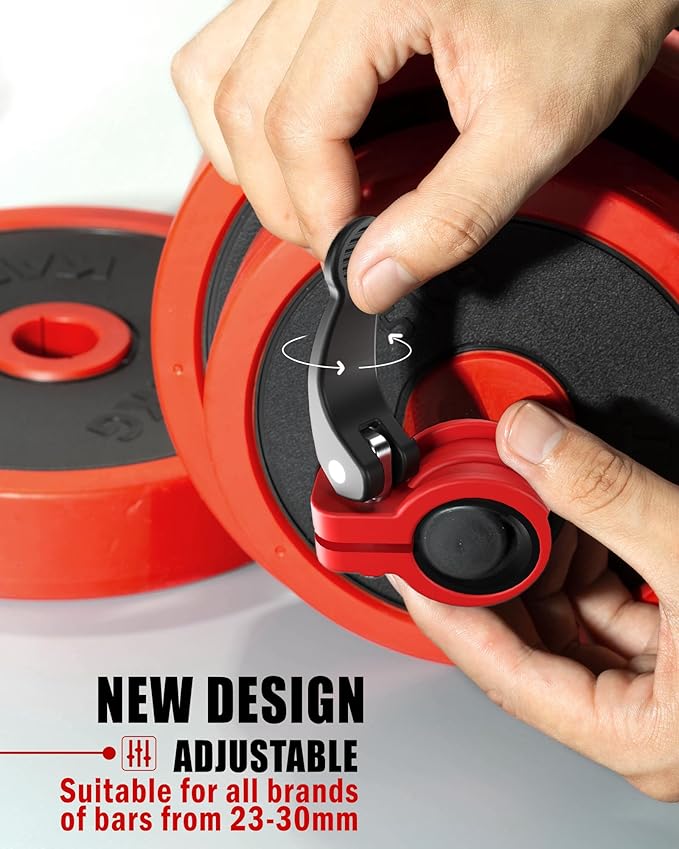 - MULTI-SIZE: Our Barbell collars can meet all your size needs. Unique design weight bar clamps accessories upgrade, accurate to every millimeter :1inch 23MM,24MM,25.4MM 27MM 28MM and 30MM ,The piston handle can adjust the tightness by itself, it will not loosen over time, durable, choose it you no longer worry about the Size mismatch problem!