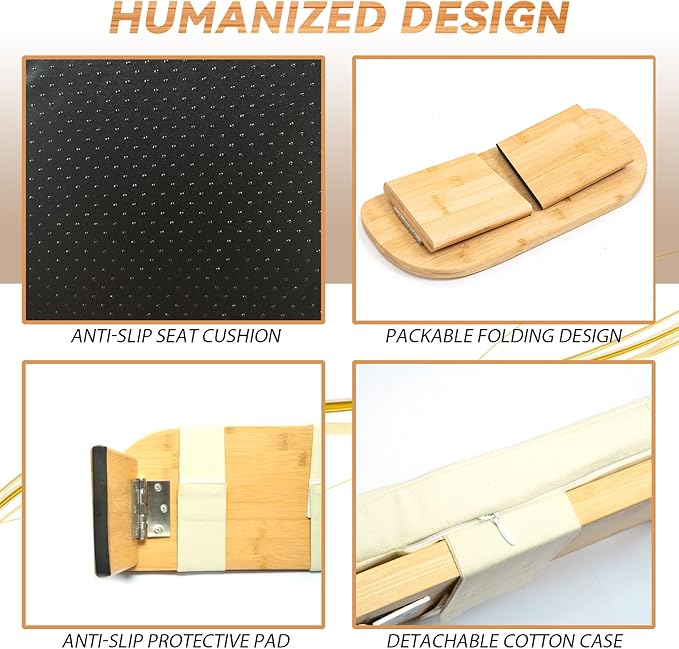 - 🥰【Slip-Resistant Design】The meditation stool is equipped with a non-slip pad on the bottom to provide extra strength and grip. Because the meditation stool chair has anti-skid design, you can use Yoga meditation bench indoor or outdoor. Thanks to its foldable design, this kneeling stool can fold flat to easily store or transport in a suitcase, or backpack.