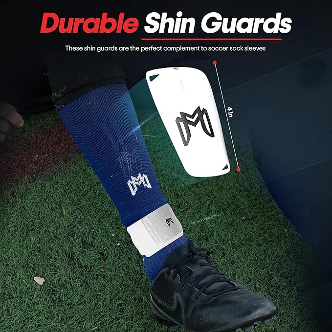 - Durable Shin Guards: The shin guards in this bundle will complete your look on the pitch. We provide you with all the soccer equipment necessary to excel on the field. These shin guards are the perfect complement to soccer sock sleeves and anti slip grip socks that we provide for you.