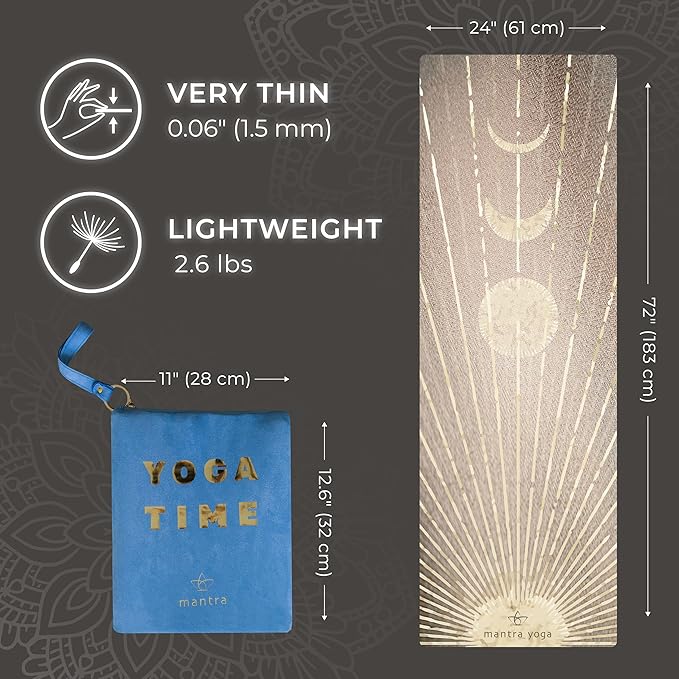 - ✈️ Compact and lightweight Yoga Mat – Looking for a yoga mat that's easy to take with you on the go? Look no further than Mantra Yoga's travel mat! Made from natural rubber and microfiber, this mat is thin and lightweight, making it perfect for practicing balance postures and maintaining a strong connection to the floor. The compact design makes it convenient to take with you on trips, use for outdoor training, or take to the studio. And when you're done, simply fold it up and tuck it away in the included small bag. With the purchase of this travel mat, you'll receive a bag for easy transport and storage. Order now and experience the convenience of a travel mat for yourself!