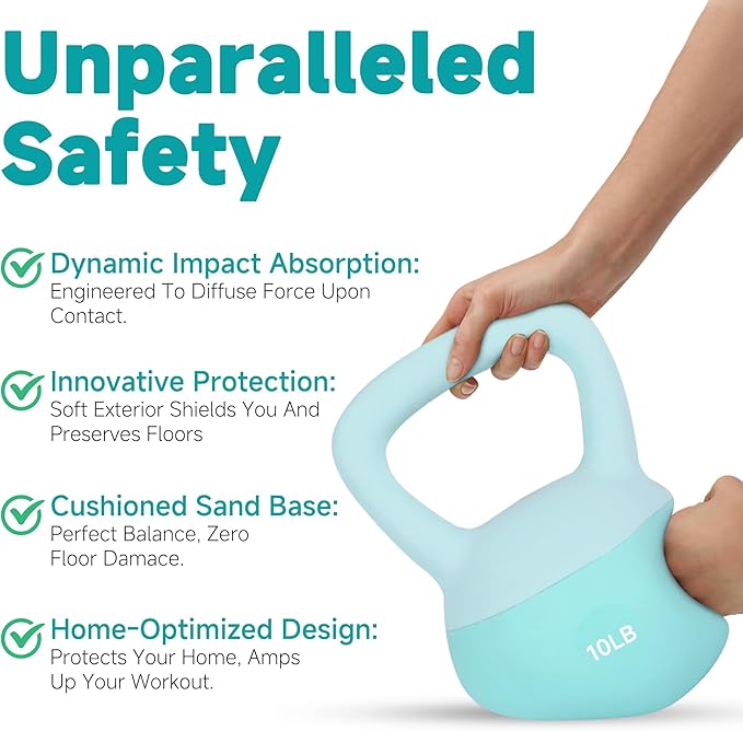 • 【Extra-Wide Handle for Strength Training】Our soft kettlebells are designed with extra wide, non-slip handles for a comfortable and secure two-handed grip during your workout. Reduce hand fatigue and improve strength training efficiency
